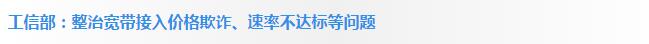 工业和信息化部近日印发通知,开展宽带接入服务行为专项整治工作。通知明确,重点整治业务宣传不规范、协议内容不完善、宽带接入速率不达标问题。针对业务宣传不规范问题,工信部强调,各企业要切实落实《关于规范电信业务推广和服务宣传工作有关问题的通知》等要求,在进行业务宣传时,做到真实、准确、通俗易懂;实行明码标价,标示醒目,价目齐全,确保用户明明白白消费。