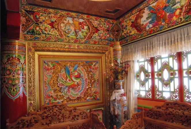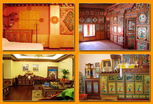 藏族民居玉树藏族民居一般为2至3层的楼房,平面呈方形;不少人家倚山建房,以石砌墙,墙里不用打木桩,却能砌得光洁、严整。往往一排建筑有几十户人家,宛如古代城堡。民居的一层设有向院外开的窗户,用作牲口圈、草房或车库。中层住人。这一层除了卧室、客厅客房、厨房仓房和厕所外,还布置了专门供奉神佛的经堂。 经堂宽敞华丽,彩画彩雕精巧的巨大佛龛占去了一面墙。经堂内还供奉祖上传下来的唐卡、法器和高僧居留后留下的吉祥信物。在专门为喇嘛精制的禅床上,铺垫着厚实、华美的毛毯。经堂是藏族人家的中心所在, 来了贵客,一定先要到此顶礼观瞻,烧几柱高香。在经堂里就连主人也不能坐卧。至于女人,即使是远来的宾客,也绝对不允许在经堂里休息。民居的第三层通常用来堆放粮食和杂物,不用彩画。顶部修造得结实、平展,用以晾晒粮食, 是很好的大凉台。人站在上面可以环视绿野乡村和远处的雪岭江流。大凉台上设置着牛首造型的香炉,用来燃烧香草、柏树枝叶,以敬奉神佛。也有在院子的墙院上和房顶四角上安放白色石头的习俗, 显示出古人白石崇拜的痕迹。康巴地区的民宅、寺以及各地的碉楼、佛塔,多是由能工巧匠不画图、不吊线直接施工建成的。几百年来任凭风吹雨打地震而经久不塌。